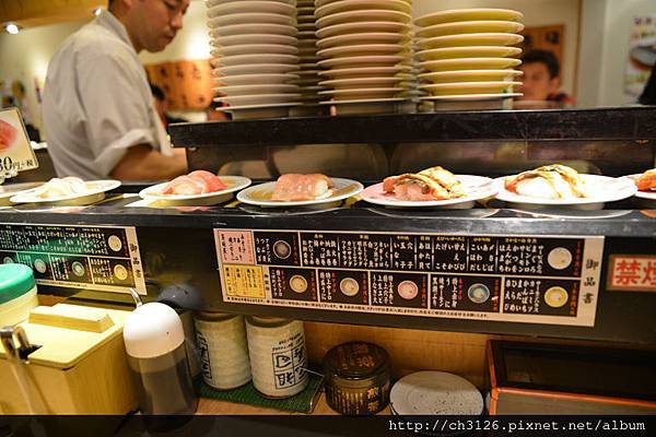 最後選擇元祖壽司囉屬於旋轉壽司用盤子計算費用哦!!