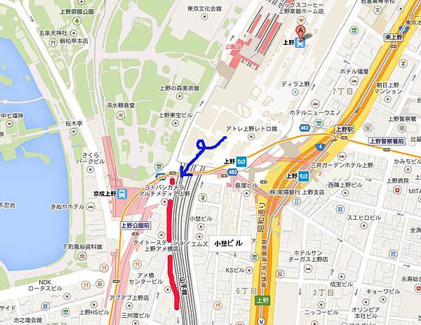 先來看一下地圖吧!!您只要搭京成本線上野車站出來..或東京地鐵上野車站出來,
