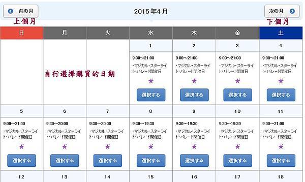 若您選擇的日期及商品,出現如下圖示,表示賣完了,..請挑別的PASS,或改選其他日期,