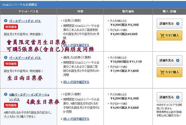 生日票券多了很多選擇,只要您是會員,當月份的生日者可以購買5張優惠票(含自己)與朋友一同到環球影城遊玩,