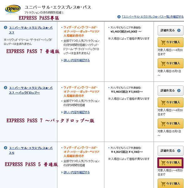 可能會標示EXPRESS PASS在幾月幾日前期間可以買,
