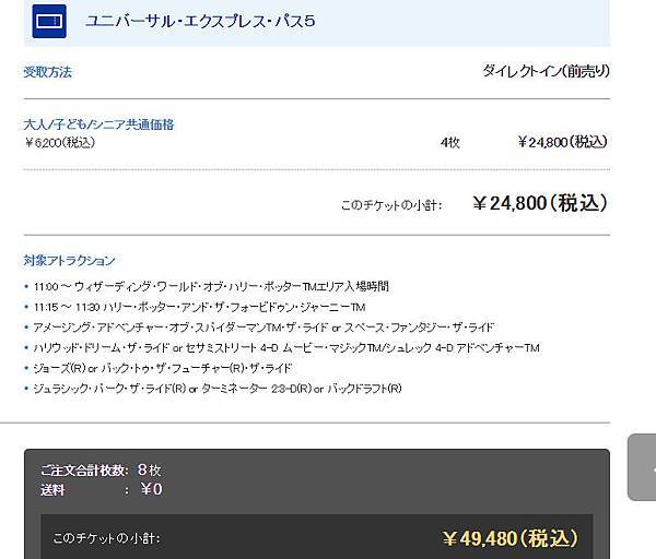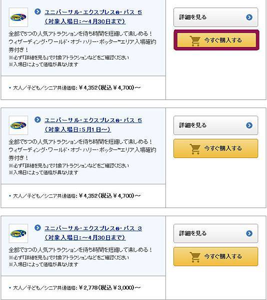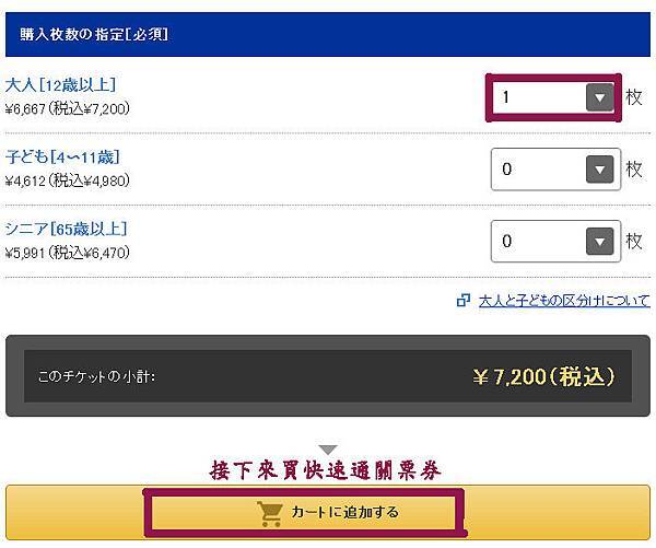 步驟四:選擇購買快速通關票券ESPRESS PASS,