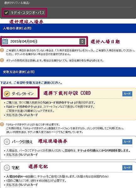 通常我們是外國人...網路下單QR CORD是比較科技也比較方便,宅配寄送要加日幣450元,還有環球不接受寄送到飯店地址哦!!切記