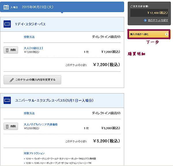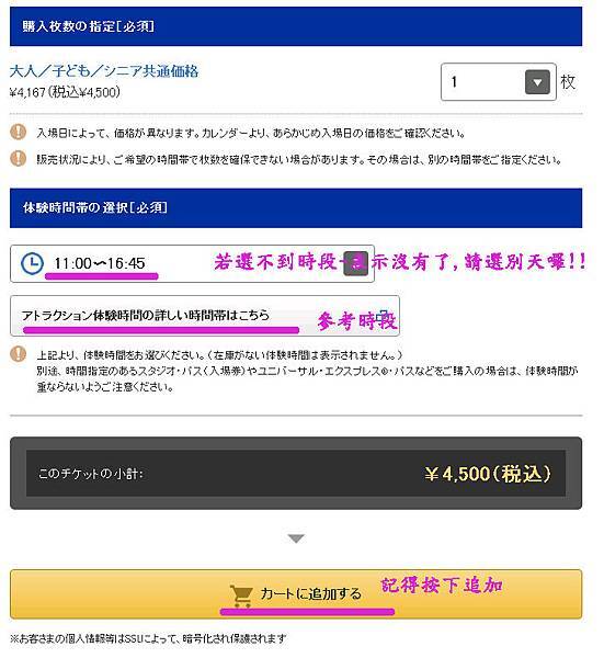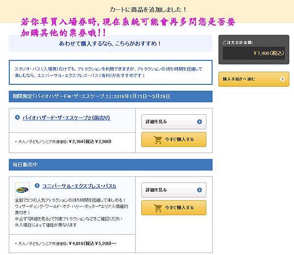 若只單買環球入場券,而不買EXPRESS PASS的話,直接選購物車來結帳囉!!