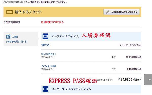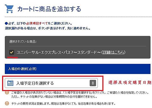 假設您在關西空港買了環球影城入場券之後,可以突然臨時上網單買EXPRESS PASS,操作一樣如上的步驟說明,
