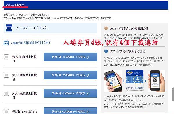 環球入場券版...現在只有一個QR CORD,右下角有列印版的方式環球官網有交待您的瀏覽器要使用IE9.0以上,google chrome及apple safari的更新版,