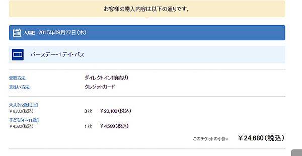本篇文章僅分享購票的方法,環球網路購票的規定很硬,退票這種事誰都幫不了忙,所以您買票後,就代表必去哦!!或許您第一次上日本網站買票會覺得很新鮮,但可能擔心信用卡交易完成後,