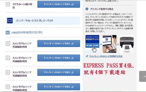 新版的EXPRESS PASS下載是....你買4張,也是有4個下載處