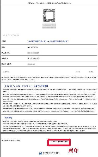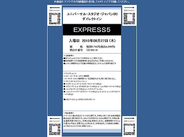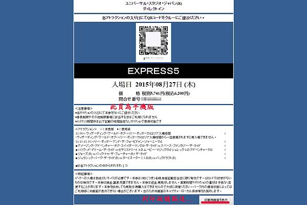EXPRESS PASS紙本列印版...請注意圖上的右下角...可別錯過