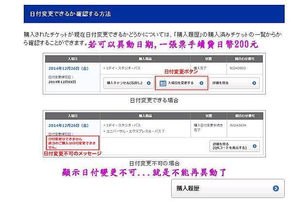 在台灣辦刷退比較簡單,但在日本...刷退很煩麻@@,網路購票有動日期及消取的服務,但如果顯示"日付變更不可"的話,只能說慘念,我在環球沒有辦刷退的經驗,所以問版大怎麼辦理??...只能說我"無法解答",只能請您打國際客服專線囉!!