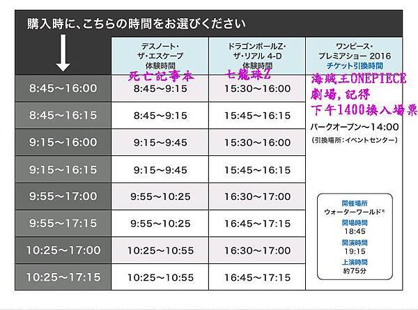ワンピース・プレミアショー (海賊王ONE PIECE)<-換票後有分配自由席座位(S2シート、1階B/C/P/Q等,依現場公告為主),位子有限,不保證一定有座子,切記!!其他區域的指定席不能去坐哦!!